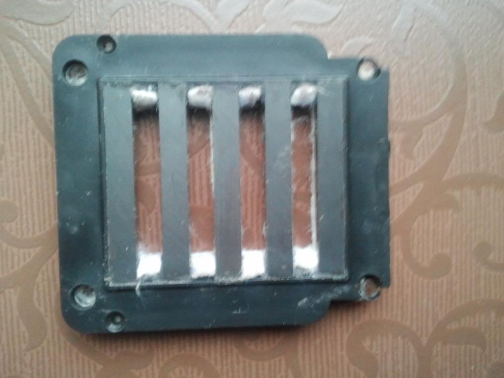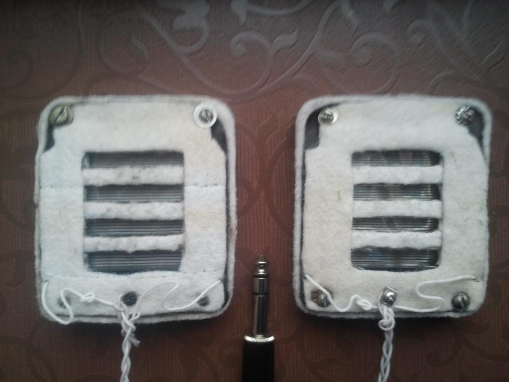 Сзади поставил решетку, вырезанную из автомобильной колонки Ямаха. Дополнительный демпфер сделал из желтой хозяйственной губки.В ней сделаны два отверстия приблизительно по 3 мм напротив центральных щелей магнитов. Демпфирование производилось на слух , после установки амбушюров. Естественно можно сделать любое. Стыки между фм промазаны сп. Третие концы косичек проводов закреплены саморезами. Решетки то же закреплены саморезами.