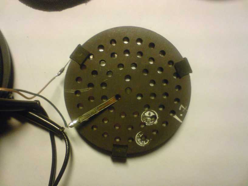 На алюминиевую спираль на мембране сигнал с кабеля передаётся с помощью прижимных контактов. Я их зачистил обычной резинкой для карандашей и немного подогнул для большего прижима.
