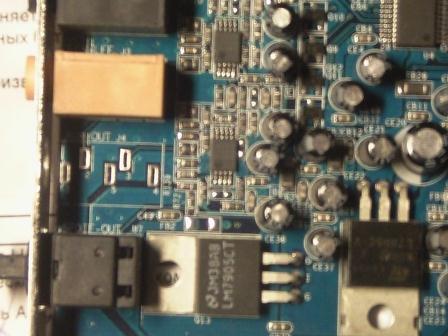 Карта выполнена на DSP ENVY24HT от VIA. На борту кодек WM8776 от Wolfson, ЦАП которого работает на фронтальные выходы, и ЦАП WM8766 от Wolfson, который работает на остальные выходы. Аналогичный набор имеют популярные звуковые карты ASUS Xonar DS и ESI Maya 44. Питание операционников стабилизировано дополнительными микросхемами стабилизаторов на карте. На борту имеется оптический выход S/P DIF.