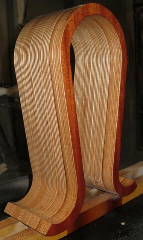 Фигурная подставка из фанеры, на лицевых сторонах, шпон Махагон.