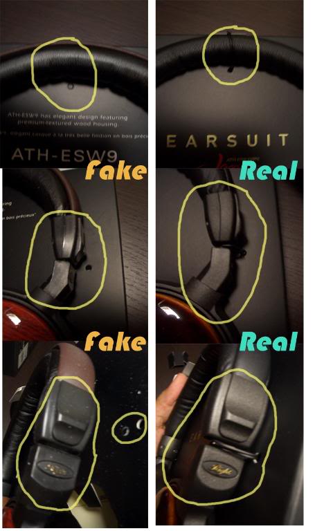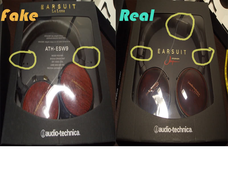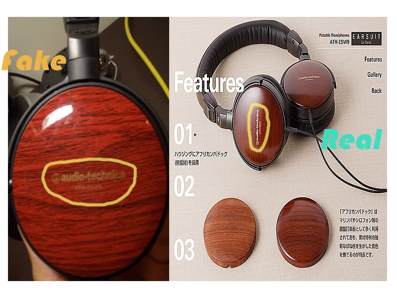 Обнаруженные отличия настоящих и поддельных Audio Technica ATH-ESW9