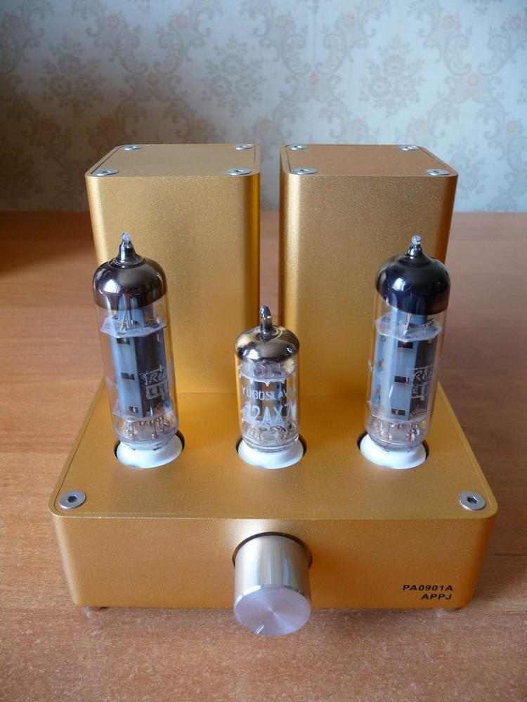 Усилитель на одной лампе 12AX7 на предварительном каскаде и двух лампах EL84 на выходе. Стоят японские трансформаторы. Звук получается благородный, прорисовка у сцены чёткая.
