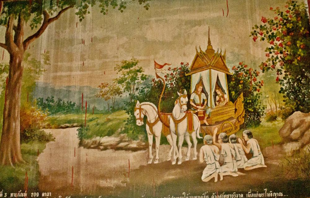 Принц по дороге в лес встречает просителей и дарит им свою царскую колесницу, на которой ехал, без малейшего колебания.
