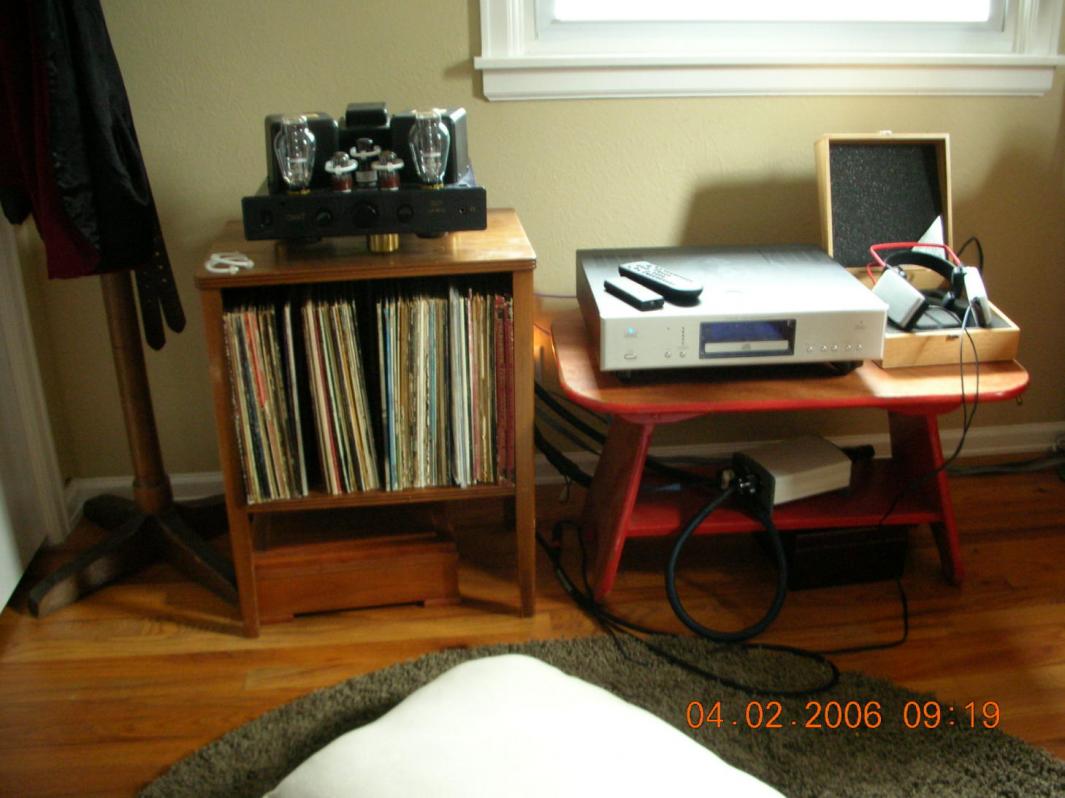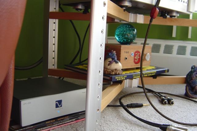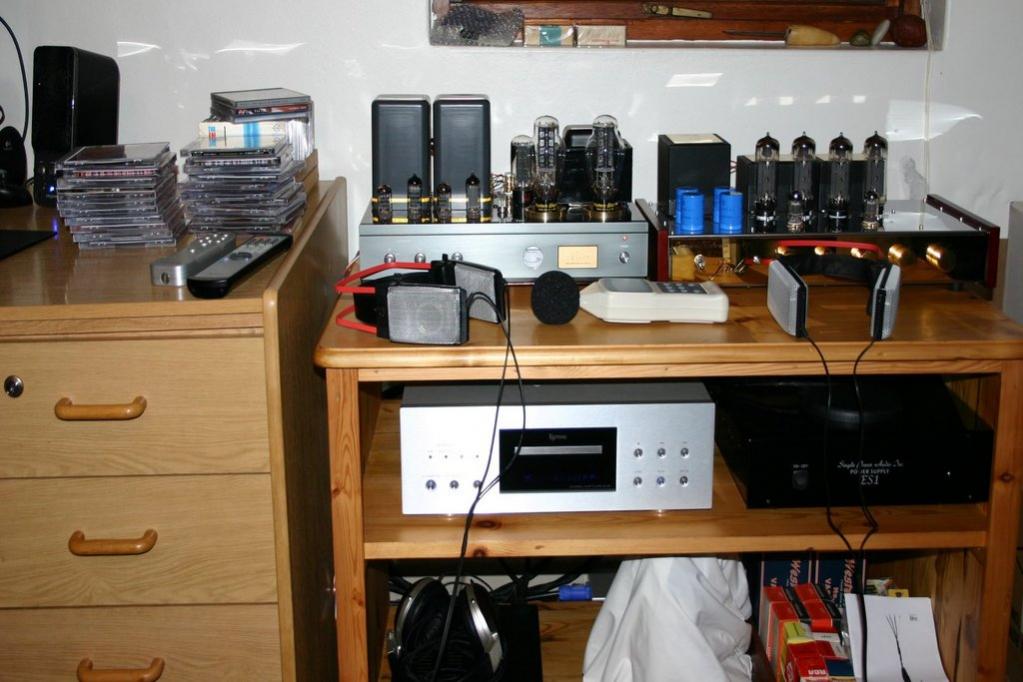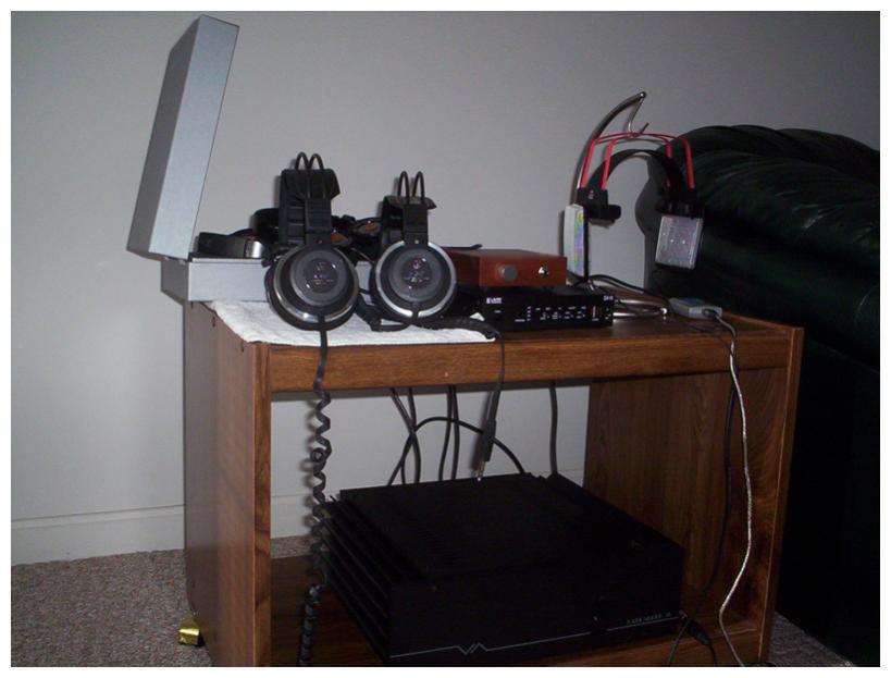 Усилитель для наушников лежит сразу за наушниками. Очень похож на Майеровский, только старой линейки с более "дубовым" дизайном, сейчас усилители поприятнее на вид. Скорее всего, это Corda HA-2.