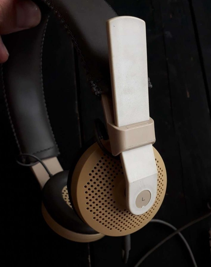 Конструкция: для корпуса этих наушников был выбран кремовый цвет, амбушюры и прокладка оголовья — серые, они заметно светлее и заметно (в 1.5 раза) меньше весят, чем HP-50. Конструкция полуоткрытая, вся задняя стенка чашек покрыта небольшими круглыми отверстиями.