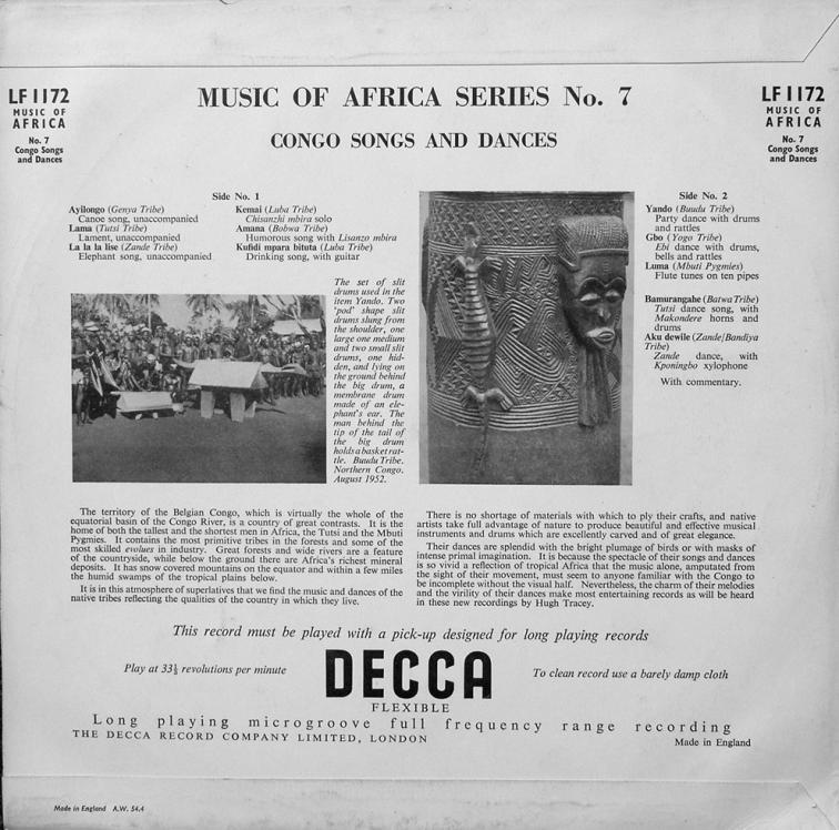 Хью Трейси (Hugh Tracey, 1903 - 1977) - неутомимый этнограф, исследователь африканской культуры, посвятил всю свою свою жизнь изучению жизни, быта, языка и музыки стран Африки. Прошел вдоль и поперек (в буквальном смысле слова) весь африканский континент несколько раз.