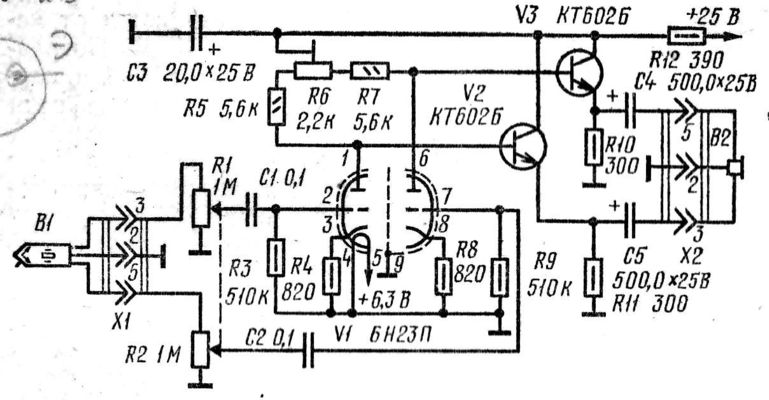 Схема не очень удачная. 6Н23П работает в нелинейной зоне ВАХ с малым током покоя.
