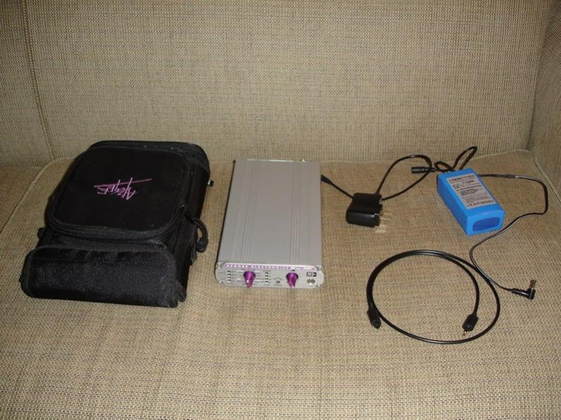 Несколько лет назад Apogee Mini-DAC продавался в комплекте вместе с сумкой для переноски. Сейчас вряд ли вы найдете такой комплект, разве что б\у. На фото есть еще купленная отдельно литиевая батарея на 12 В.
