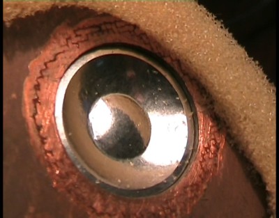 В диафрагме лобзиком и круглым напильником формирую отверстие диамтром 16 мм.
