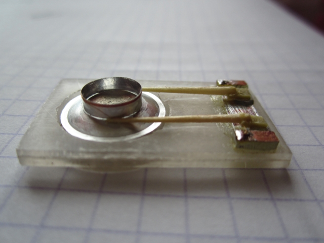 Основание наушника - оргстекло толщиной 2 мм (склеил два стекла толщиной по 1 мм при помощи питерского "лак-цапона" - отличная замена дихлорэтана!