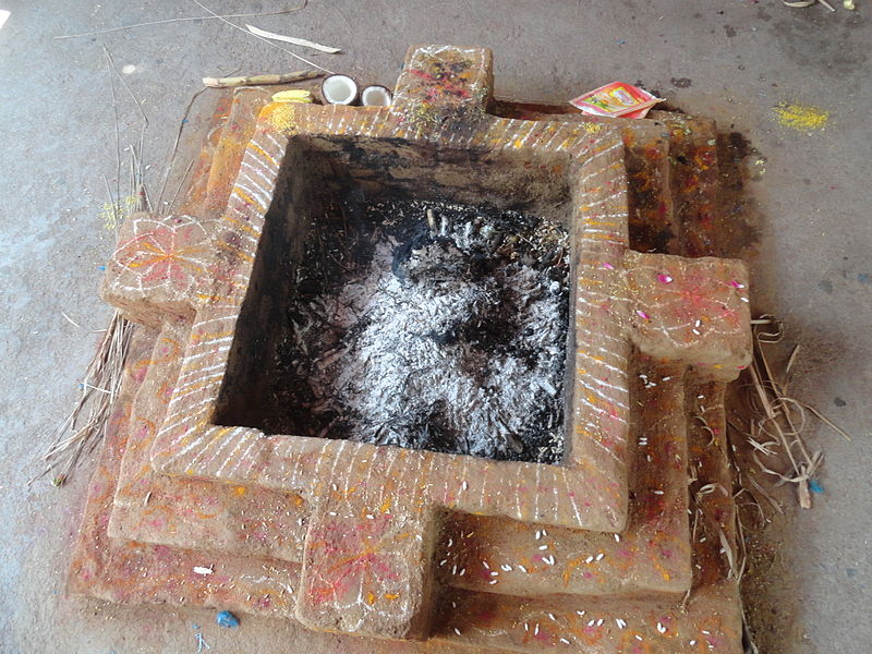 Первоначально огонь берётся из дома отца. Когда сын и его новообразованная семья выделяется в самостоятельное домохозяйство, огонь впервые зажигается во время свадьбы. Затем в ходе жертвоприношения огонь разделяется на два пламени. Одно из них становится родовым (семейным), называемым «грихья-агни». Другое считается общинным и предназначенным для жертвоприношений, его называют «шраута-агни». Если семейный огонь служит для приготовления пищи, то общинный огонь используется для ритуалов. Оба огня поддерживаются на протяжении всей жизни человека. Без непрерывного поддержания огня горючий материал поджигается при помощи вязанки сухой травы куша.