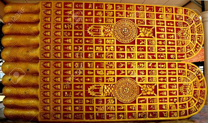 Индуистская традиция поклонения отпечаткам падук повлияла на буддийскую практику. В раннем индийском буддизме Будда изображался в неиконической или в нерепрезентативной форме, часто как пустой трон под зонтом, как дерево бодхи или как отмеченные божественными знаками отпечатки стоп Будды в камне. На отпечатках стоп изображены разнообразные благоприятные символы как знаки божественности Будды: победоносное знамя, львиный трон, трезубец, Три драгоценности, вечный узел, свастика, раковина и пара рыб, но чаще всего встречаются лотос и колесо. В раннем буддизме ваджраяны восемь благоприятных символов обожествлялись в восемь богинь, известных как Аштамангала Деви, каждая из которых держит один из благоприятных символов в качестве атрибута. Похожая тибетская традиция определяет восемь символов как составляющие физического тела Будды, зонт (голова Будды), золотые рыбы (глаза Будды), сосуд сокровищ (шея Будды), лотос (язык Будды), колесо (стопы Будды), победоносное знамя (тело Будды), раковина (речь Будды), бесконечный узел (ум Будды).
