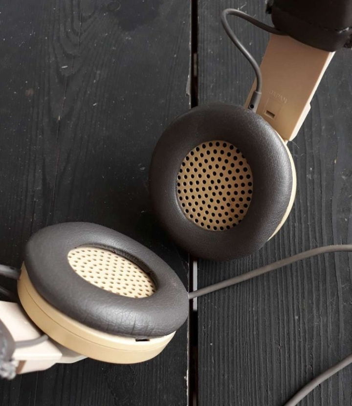 Конструкция: для корпуса этих наушников был выбран кремовый цвет, амбушюры и прокладка оголовья — серые, они заметно светлее и заметно (в 1.5 раза) меньше весят, чем HP-50. Конструкция полуоткрытая, вся задняя стенка чашек покрыта небольшими круглыми отверстиями.
