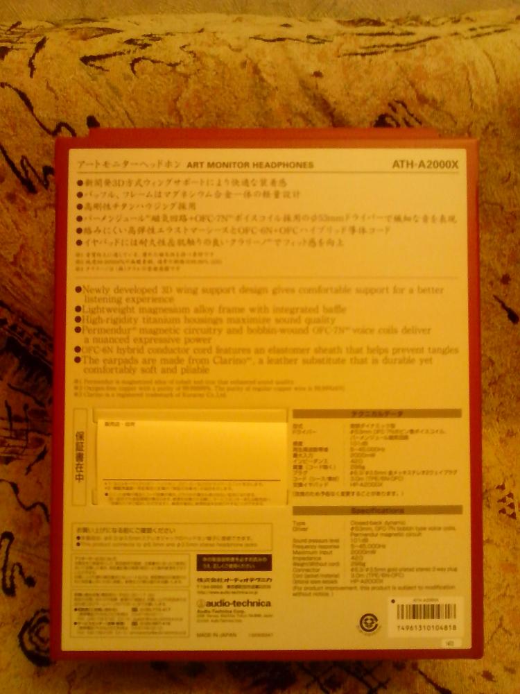 Продаю наушники hi-класса Audio-Technica ATH-A2000X. Заказал два месяца назад в Японии. Надел только пару раз. Состояние идеальное. Причина продажи – покупал для прослушивания в дороге, на улице (я много двигаюсь). Но их габариты не позволяют возить их с собой в сумках. Да и сломать боязно. Для дома имею другие отличные наушники.