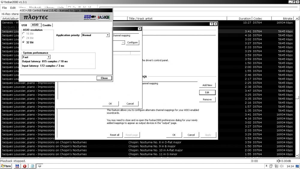 В процессе прослушивания данного девайса посредством foobar2000 v1.3.1 и через фирменный программный плеер TEAC HR Audio Player V1.0.0.5. Выявило огромную задержку при переключении треков, вывод сигнала через USB. Звучание конечно у него экстра-класс! Но, задержка. Жесть! Принял решение снять с портатива iBasso D2 + Boa, особо он там не нужен, снял с него батарею. Заодно, внёс небольшие изменения в портатив. По факту незначительные изменения в схеме. Значительные изменения в ушках. Свои Yamaha EPH-50, после многих доработок, при хвалебных отзывах о них. Я выбросил, предварительно раздавив прессом. :-). Достались мне безымянные Deutschland динамические драйвера 16 Ом. Поставил их в оригинал Эхо Н-16-40 С. Я поразился динамике ушек! Оставлю их для Hi - End портатива. :-). Далее по теме. Прикрутил к iBasso, Ploytec USB ASIO (USB 2 Audio) Driver 2.8.40 (64-bit). Встал как родной. Вывод сигнала от Laptop через USB, к iBasso. От iBasso к TEAC A-H01 через Line, минуя усилитель iBasso. Итог: Прослушивание образов [SACD-R][OF], слушаю только их. Foobar2000 > Ploytec USB ASIO (USB 2 Audio) Driver 2.8.40 (64-bit), даёт превосходный результат, тормозов нет, звук улёт! P.S. Возможно, в один из уготованных мне дней, Богом? Или, самим Дьяволом. :-). Я доберусь до нутра инженеров TEAC. Но, не сейчас. В данный момент, меня всё устраивает! Вопрос в другом? Надолго ли! Чарующая сказка ночи! :-(. Именно :-(.