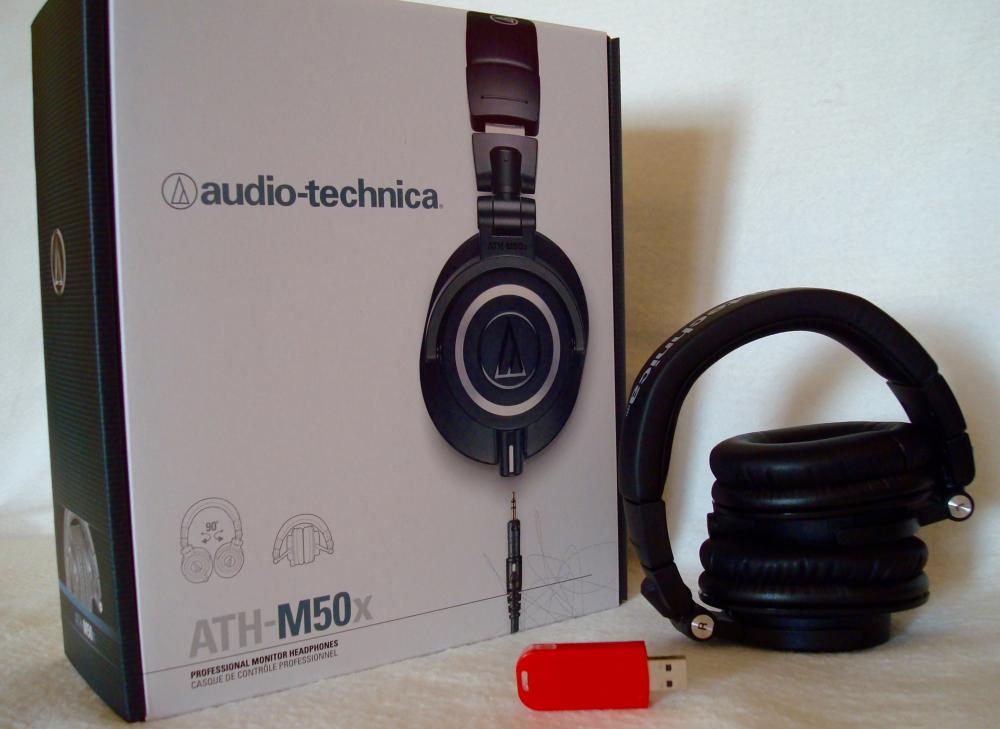 - новые наушники Audio-Technica ATH M50X в фирменной коробке со всеми кабелями и переходниками;