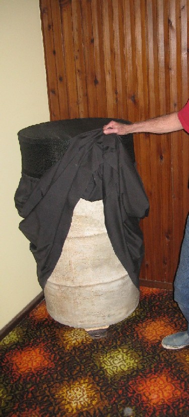 Основа акустики - бочка цемента, динамики на деревянном основании.