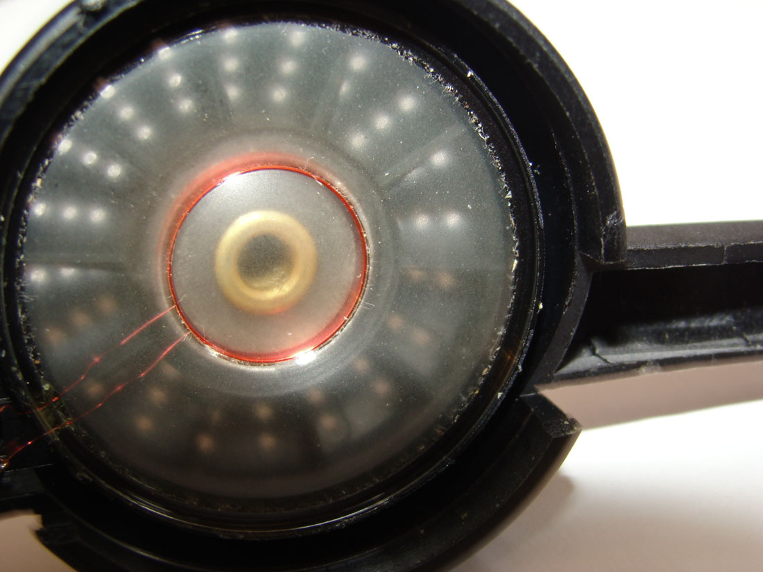 Так что вот такие дела. Хотелось бы узнать о них побольше, а особенно форму и наполнение оригинальных амбюшуров. Ибо последних не наблюдалось !!!! Я было подумал что их и не было, но остатки клея на чашах с внутренней стороны убедили меня в обратном. Непонятно так же наличие на чашах со стороны динамиков пластикового штырька со шляпкой из того же материала. Путём размышлений я пришёл к выводу что это такой фиксатор амбюшуров, которые представляли собой, по видимому, простые кружки из поролона или какого-то другого материала.
