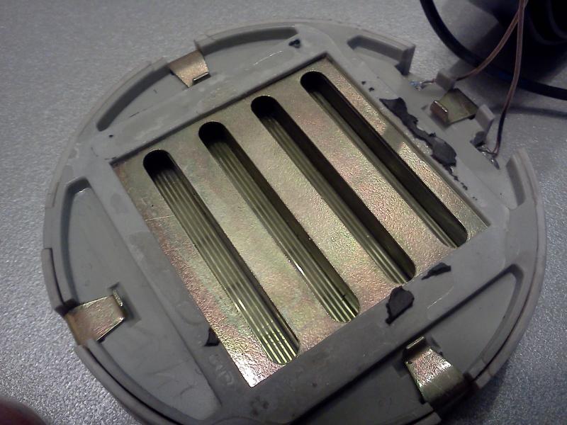 Upd: Искажения появляются как раз из-за отражения звука от этой самой, неправильно установленой решетки, вместо того чтобы свободно выходить через пазы, мимо магнитов (как это происходит спереди, со стороны уха) и глушиться в слоем фетра.