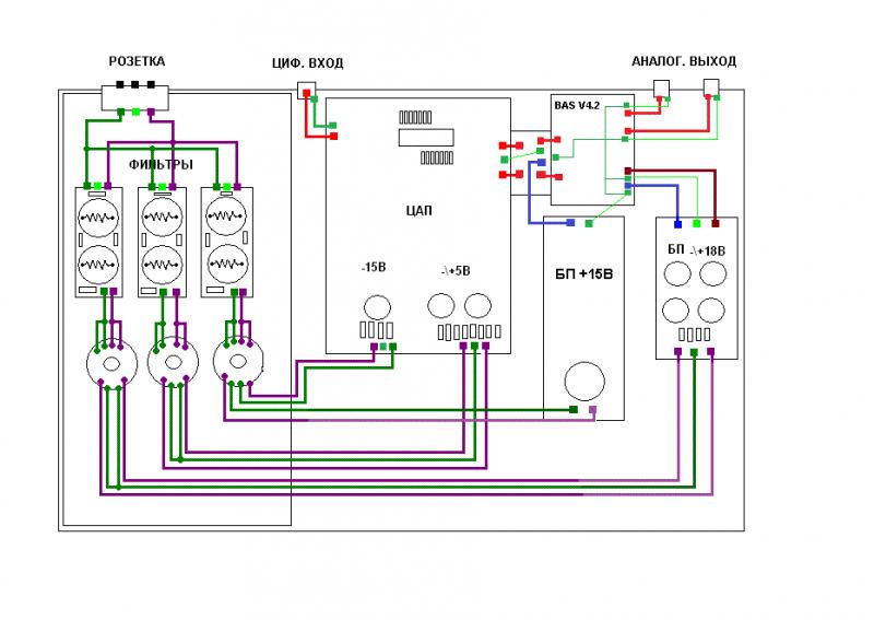 А так вроде все точно. Чтобы подключить Рогова нужен конвертер с резисторами, он между выхлопом и цапом. Вообщем опять куча зеленых квадратов.