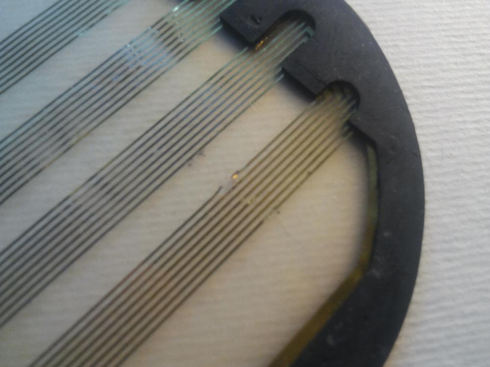 Восстановить поврежденную дорожку в ТДС-15 я сначала попытался широко разрекламированным токопроводящим клеем - Контактол(Keller)- с серебром. Клей, опасаясь подделки купил в надежном месте - в магазине "Чип и Дип" - там 2 грамма -стоит 390 рублей - на радиорынке точно такой же 100 рублей. Как, полагается по инструкции тщательно размешал клей и нанес его под отогнутые половины дорожки - получилась шина. Так как мне повезло и порванная дорожка была крайней - ширину шины сделал раза в четыре больше ширины дорожки. Дорожки в ТДС-15 покрыты лаком и сверху не токопроводны - поэтому соединять их надо снизу. Концы дорожек прижал зубочистками и дал клею схватиться(по инструкции около 30 минут). Часа через два прозвонил - сопротивление мембраны возрасло с 14.4 Ома до 36 Ом -естественно это был неудовлетворительный результат. Попробовал под дорожки подложить полоску пищевой фольги и соединить с оборванной дорожкой через клей - сопротивление каждый раз было разное, но слишком большое для мембраны. На этом решил прекратить эксперименты с контактолом(разрыв с миллиметрового после экспериментов стал двухсантиметровым) - может быть конечно, что-то делал неправильно - но у меня сложилось мнение , что сопротивление в месте соединения получается случайным и слишком большим. Оконные нагреватели в автомобилях им может быть и можно клеить -делая толстый слой, но для тонких работ он мало подходит.