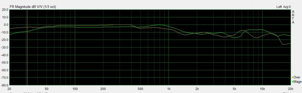 На одном стенде измерил LCD-2(зеленый график) и мод Техниксов (желтый график).