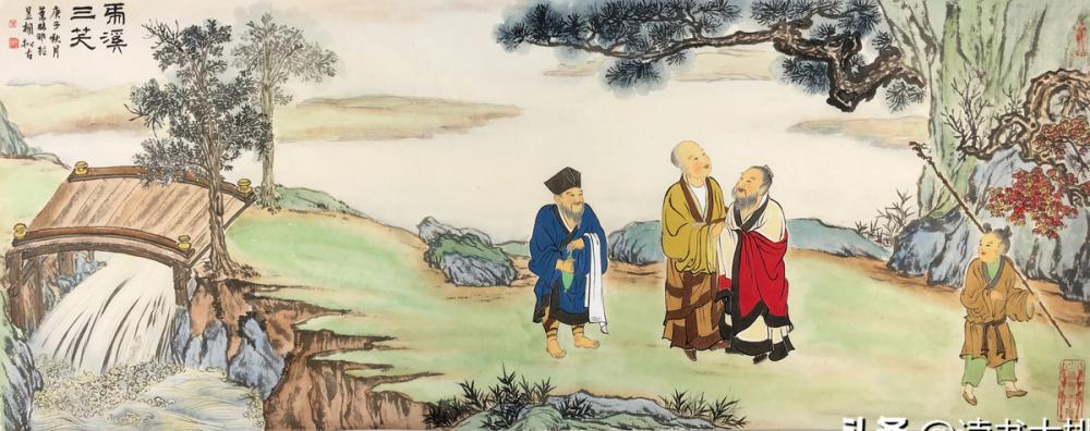 Знаменитый сюжет в китайской живописи - Трое смеются у Тигриного Ручья.