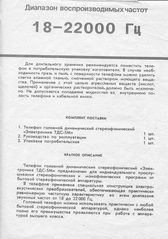 А у меня ТДС-5М Саратовского ПО "Контакт". Я их купил в магазине "Спортивный" в 1993 году за 3500руб. Коробка не сохранилась. Сами наушники в отличной форме и радуют своего хозяина. Фото если нужно выложу.
