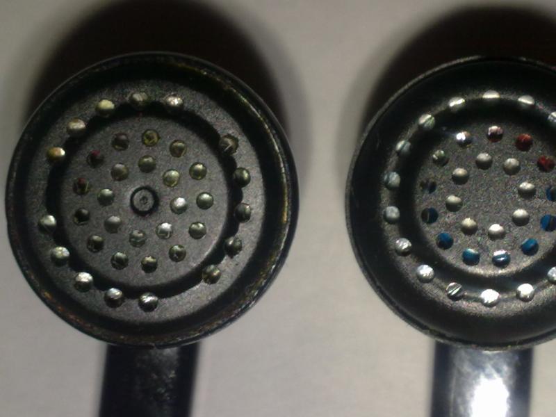 На всякий случай для тех кого заинтересовал наушниками от нокиа 5800 предупреждаю, что телефон был приобретен в Европе, и наушники продаваемые у нас, только внешне похожи, а отличие в звуке очень разительное. В поисках замены отслушал и отсмотрел боле 20 шт и не одного аналога, у наших драйвера другие.!!! На фото мои с лева с бронзовым шнуром. На фото видно решетка драйвера отличается формой, и на моих наушниках во внешней перфорации отсутствуют каждое шестое отверстие плюс поцентру решетки есть вмятинка. На всех что я видел этого нет.
