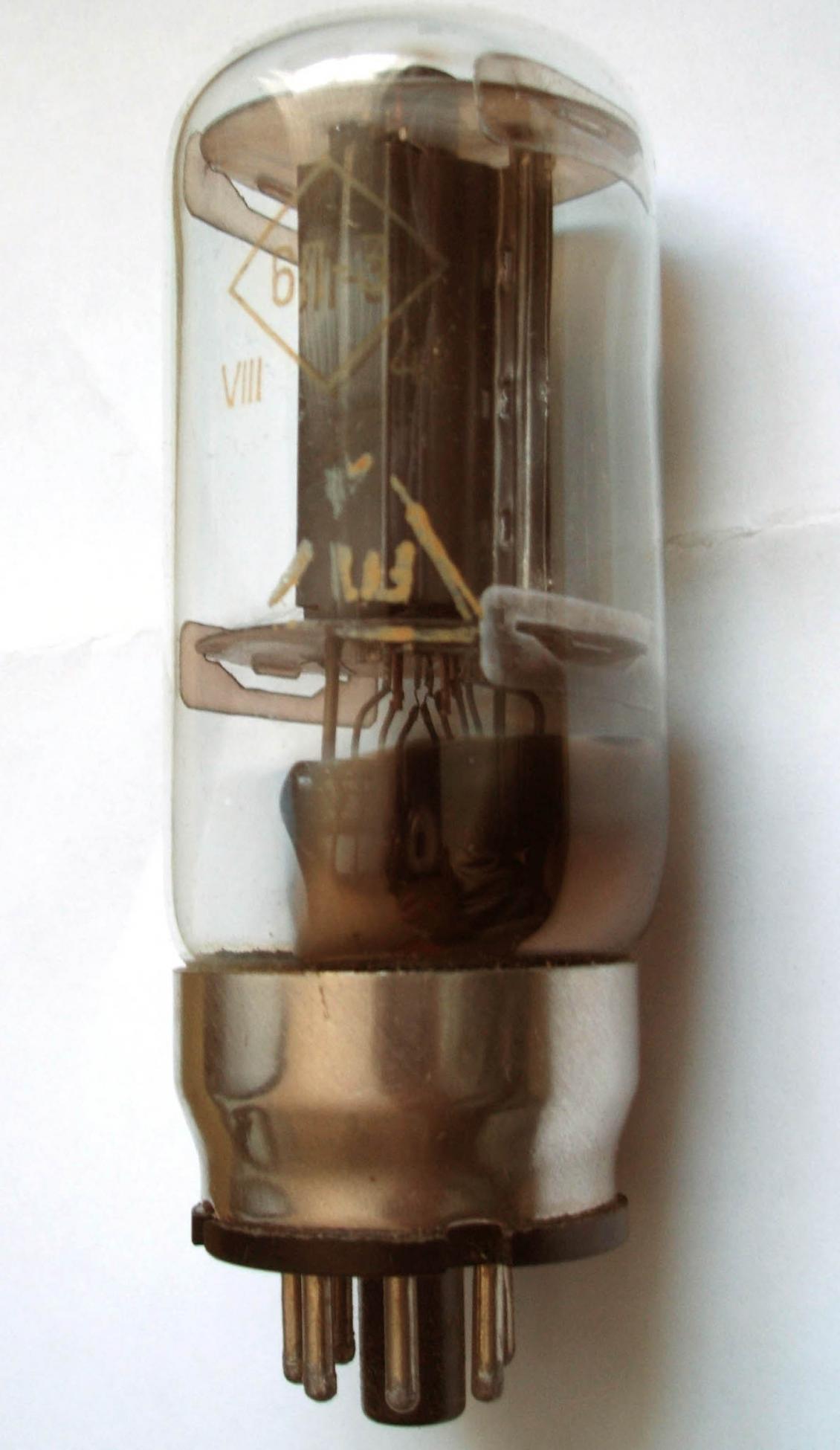 Фотография лампы 6П-3 (полный аналог 6П3С, 6L6), выпущенной в августе 1941 года. Лампа рабочая.