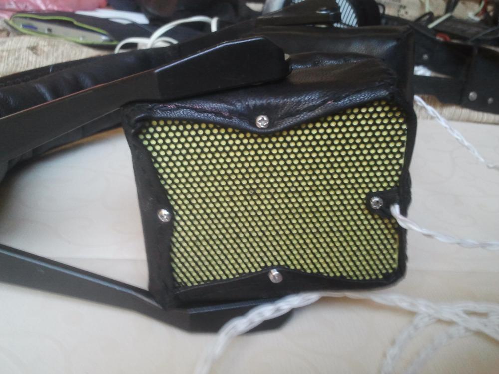 Исходил из того , что лучший корпус для изодинамики - это отсутствие корпуса. Поэтому драйверы просто обшил тонкой кожей и сшил кожаные абмушюры. Амбушюры планирую двух видов - простые и скошенные.В драйверах нарезал резьбу под винты М3. На винты одел втулки и шайбы. Все собрал.