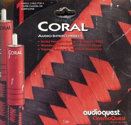 Модель Audioquest Coral была популярна в начале 2000-ых годов, позднее выпускалась под названием Coral/CQ. В настоящее время под таким названием не выпускается. Нынешний примерный аналог называется Sidewinder.