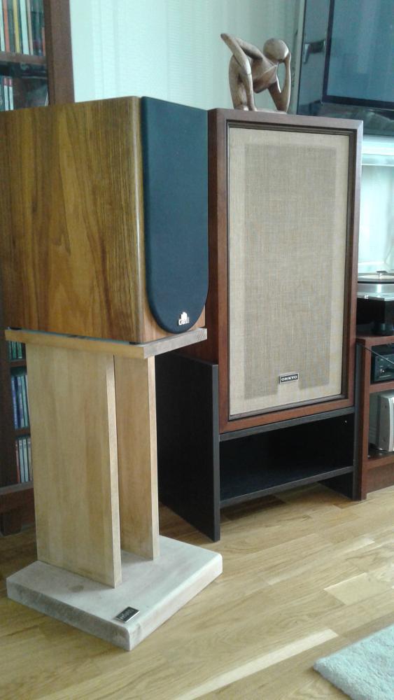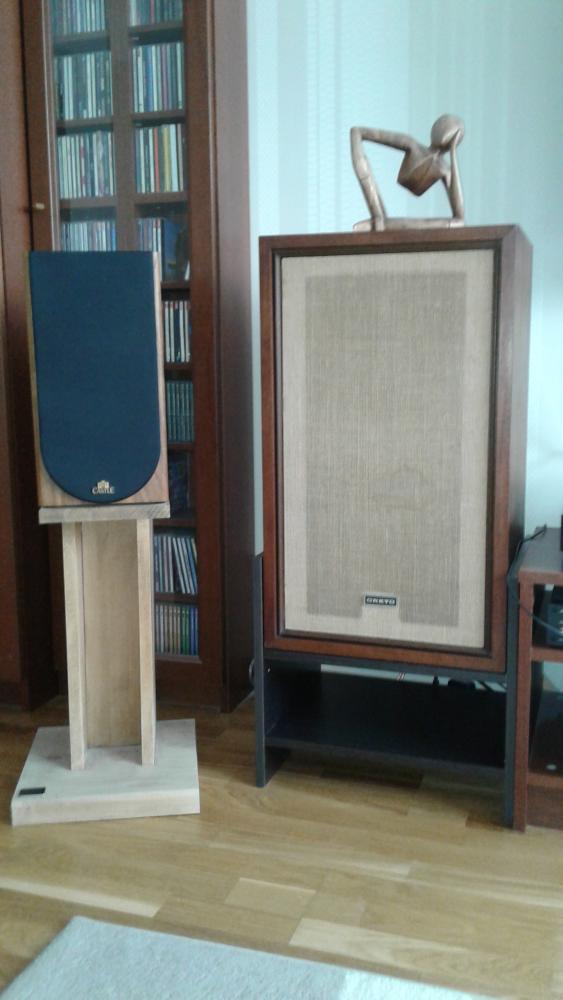 Никогда не покупал фирменные стойки - всегда либо что то не устраивало, либо жаба душила. Для актуальной Castle Knigt 2 собрал стойки из буковых ступеней и подступенок. Для Onkyo E63A mkII купил в ИКЕЕ прикроватную тумбу и снял верхнюю полку