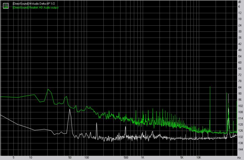 Мы даже прогнали обе карты через Rigtmark audio analyzer 6.2.3. Разница по графикам незначительна. Вот если кому интересно файлы....