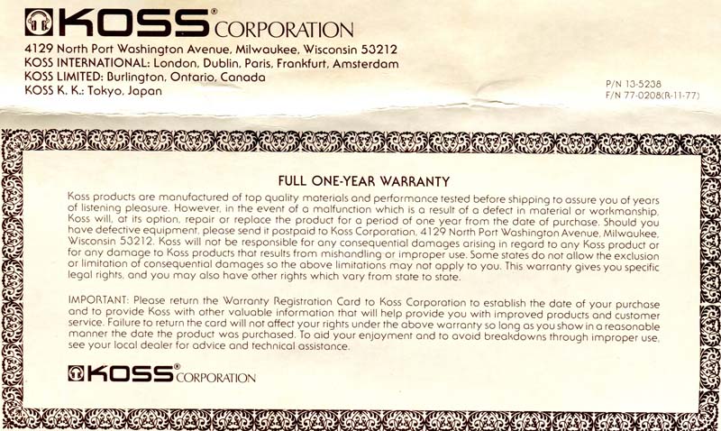 Благодаря расторопности товарища, стал обладателем NOS Koss PRO/4AAA. Что интересно, судя по документам, первого, 1977 года выпуска. Сопротивление у наушников нестандартное – 220 Ом, а не 250 Ом. Документы могу отсканировать и выложить в теме, если будет интерес. Демпфер, разумеется, рассыпался в прах, в процессе замены я был вынужден срезать один из пластиковых крепежей оригинального демпфера (был намертво приклеен – видимо сборщик не поскупился на каплю фиксирующего клея). Соответственно, второй крепеж тоже пришлось выкрутить (он поддался легко) и удалить.