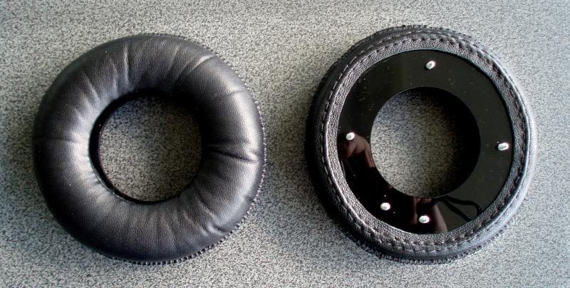 Вот, к стати, еще вариант таких же амбушюров, но из кожи. Эти субъективно чуть хуже в плане звука. Ну и я кожаные вообще не люблю. Данные экземпляры под заказ делались для клиента одного.