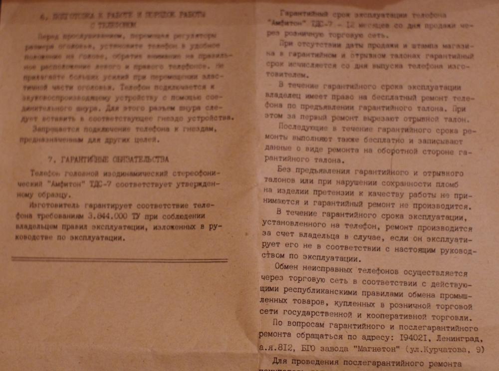 Ленинградские ТДС-7 (коробка и мануал):