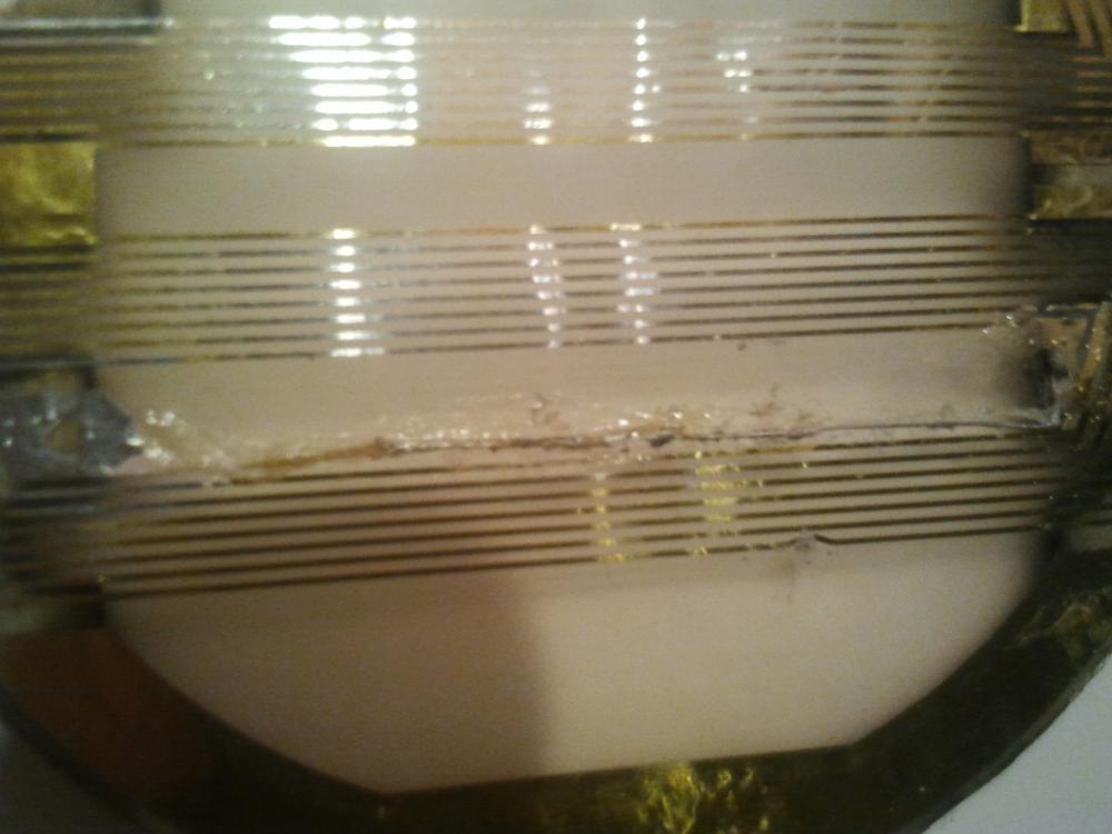 Восстановить поврежденную дорожку в ТДС-15 я сначала попытался широко разрекламированным токопроводящим клеем - Контактол(Keller)- с серебром. Клей, опасаясь подделки купил в надежном месте - в магазине "Чип и Дип" - там 2 грамма -стоит 390 рублей - на радиорынке точно такой же 100 рублей. Как, полагается по инструкции тщательно размешал клей и нанес его под отогнутые половины дорожки - получилась шина. Так как мне повезло и порванная дорожка была крайней - ширину шины сделал раза в четыре больше ширины дорожки. Дорожки в ТДС-15 покрыты лаком и сверху не токопроводны - поэтому соединять их надо снизу. Концы дорожек прижал зубочистками и дал клею схватиться(по инструкции около 30 минут). Часа через два прозвонил - сопротивление мембраны возрасло с 14.4 Ома до 36 Ом -естественно это был неудовлетворительный результат. Попробовал под дорожки подложить полоску пищевой фольги и соединить с оборванной дорожкой через клей - сопротивление каждый раз было разное, но слишком большое для мембраны. На этом решил прекратить эксперименты с контактолом(разрыв с миллиметрового после экспериментов стал двухсантиметровым) - может быть конечно, что-то делал неправильно - но у меня сложилось мнение , что сопротивление в месте соединения получается случайным и слишком большим. Оконные нагреватели в автомобилях им может быть и можно клеить -делая толстый слой, но для тонких работ он мало подходит.