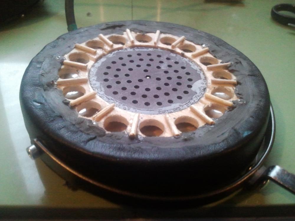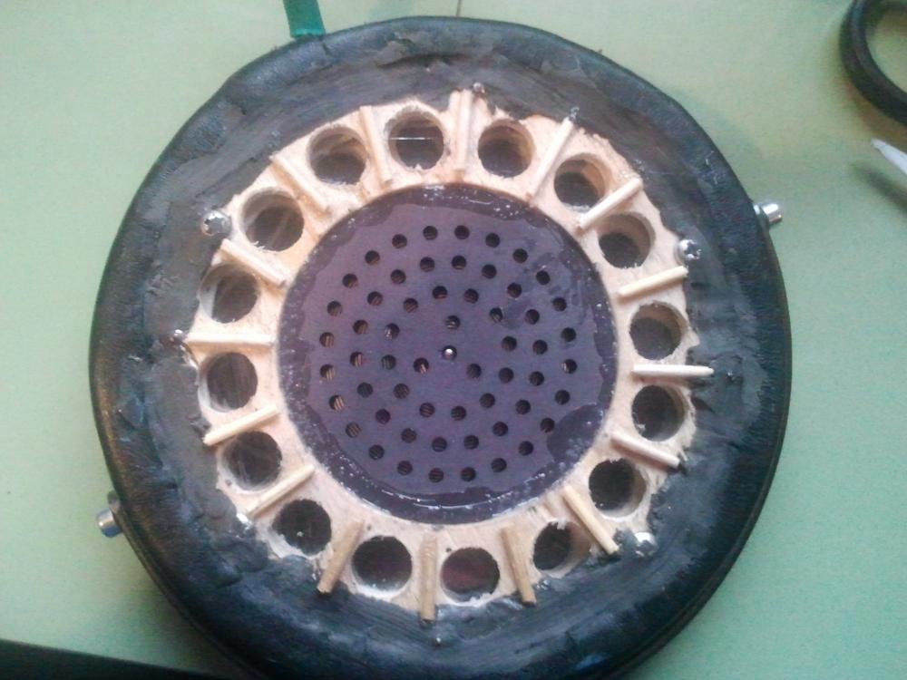 Со стороны амбушюр наклеил кусочки зубочисток. Это нужно что бы отгибались амбушюры и проходил звук лучше. Края мембраны излучают низкие - эти частоты должны по идее огибаться .