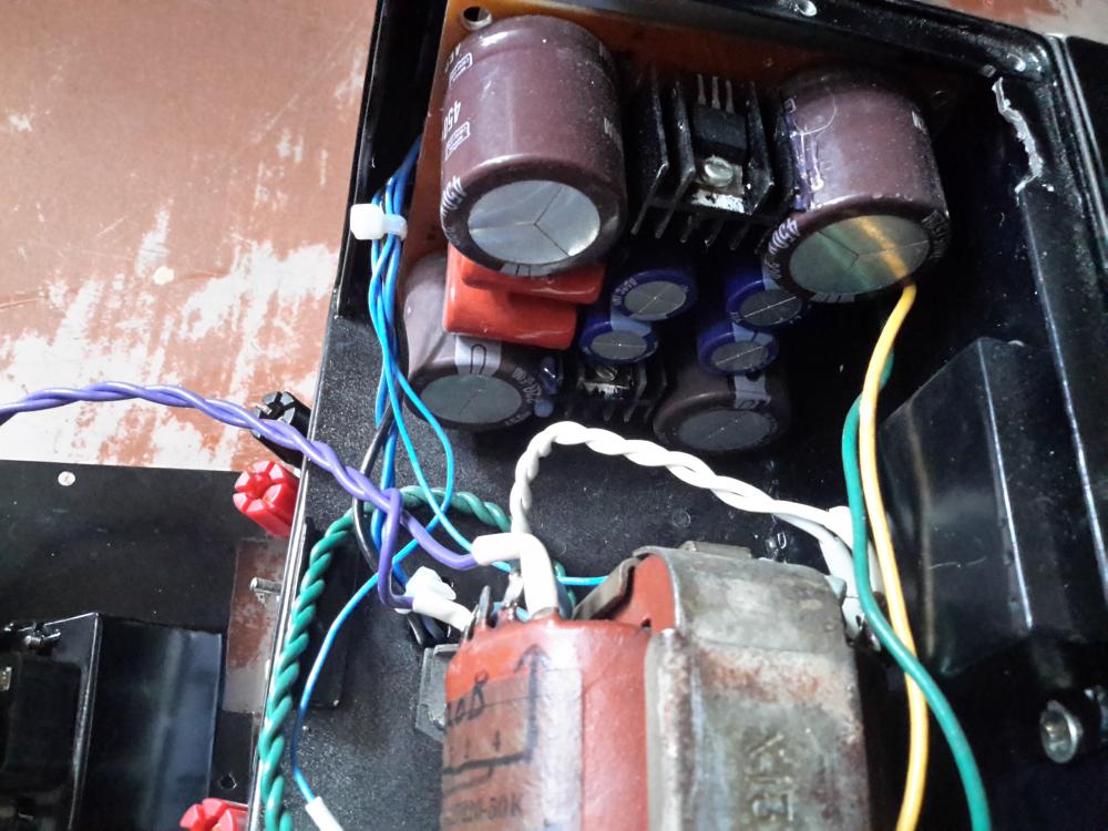 Там по схеме в питании стоят дросселя,а в конечном варианте установлен электронный дросель что на фото. Провода питания вообще в подвале нет. Если только питание накала ,каторый идет витой. Монтаж в подвале делал сам и возможно по неопытности залепил земляную петлю. На досуге проверю.
