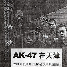 October 2000, AK 47 is formed around Lao Mao (born 1975) as a band concentrating on industrial, techno and digital hardcore, music styles they are going to transform later on into a new metal electro style. Their first live performance took place on December 23rd in the (old) Get Lucky Bar in Beijing.