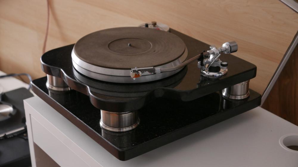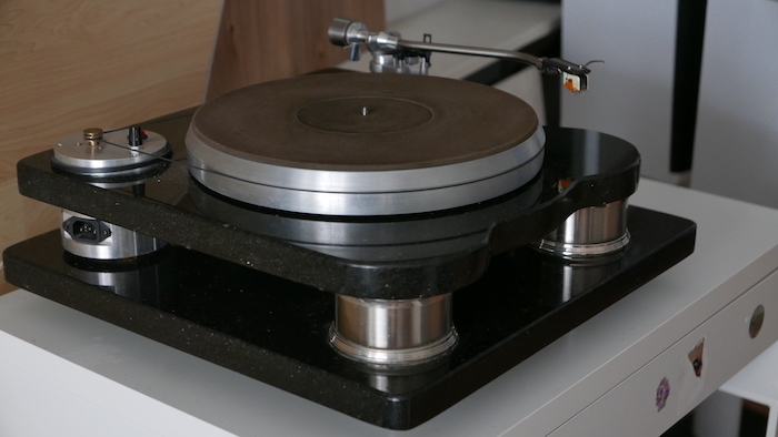 Они формируют звук исключительной естественности и четкости, хотя и никак не участвуют в передаче электрического сигнала. Ноги массивные, пружинные и регулируются по высоте — классика жанра. На диске — завинчивающийся (!) прижим, который выравнивает искривления, характерные для винила и сообщает пластинке особую стабильность в работе. Подшипник и прочие изнашиваемые детали — из легированной стали, то есть практически вечные. Проигрыватель негромоздкий и при этом пленяет и обезоруживает своей строгой красотой, благородством линий и материалов. Материалы организованы слоями, причем центр тяжести модели находится внизу — все это эффективно убирает резонансы, возникающие в работе. Сложный мотор трехфазного тока и высокого момента вращения с электронной коммутацией... понимать необязательно — главное, что мотор не примитивен и не грохочет, как у многих. Стробоскоп регулирует скорость, что особенно пригодится для отстраивания «криво» записанных пластинок на 78 оборотов. Вес около 18,2 кг.