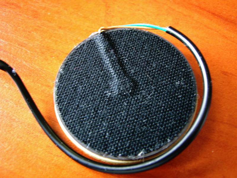 К достоинствам конструкции я бы отнес отсутствие решетки между ухом слушателя и излучателем. Сам излучатель закрыт с двух сторон звукопрозрачной тканью. Ткань хорошо приклеена, по этому отдирать я её не стал. Диаметр излучателя - 45 мм. Толщина магнитов всего по 2,5 мм. Не знаю из какого материала они сделаны, но точно не из феррит-бария, т.к. имеют рыжеватый оттенок и приличный вес.