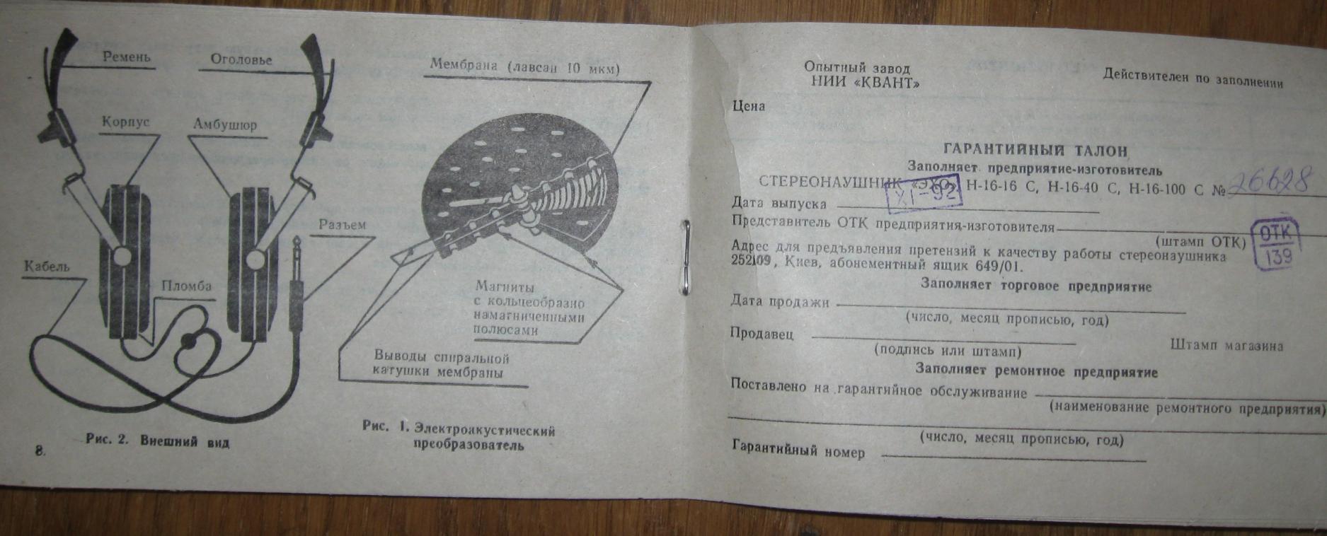Представляю вашему вниманию инструкцию от наушников Н-16-40. В инструкции указан изготовитель "Опытный завод НИИ "Квант".  Получается эти наушники тоже киевские?