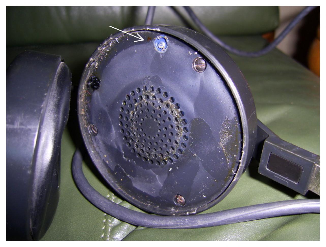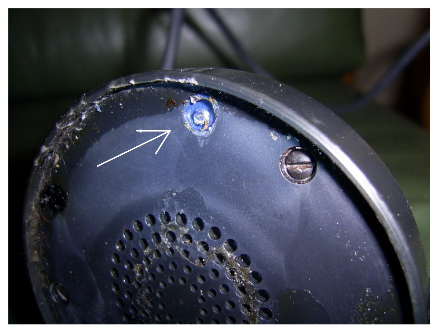 Четвертый саморез залит смолой (типа пломба), а гайкой крепится контакт с проводом и ушко мембраны внутри наушника. И не в коем случае не откручивайте гайку в центре магнита - порвете мембрану.