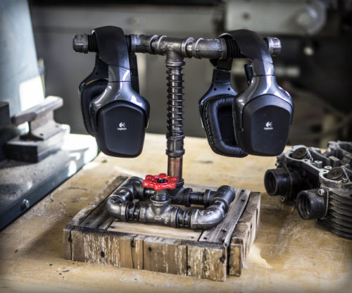 Находится по описанию: Gaming Double Headset / Headphone Hanger Stand with valve ... Industrial Stea.