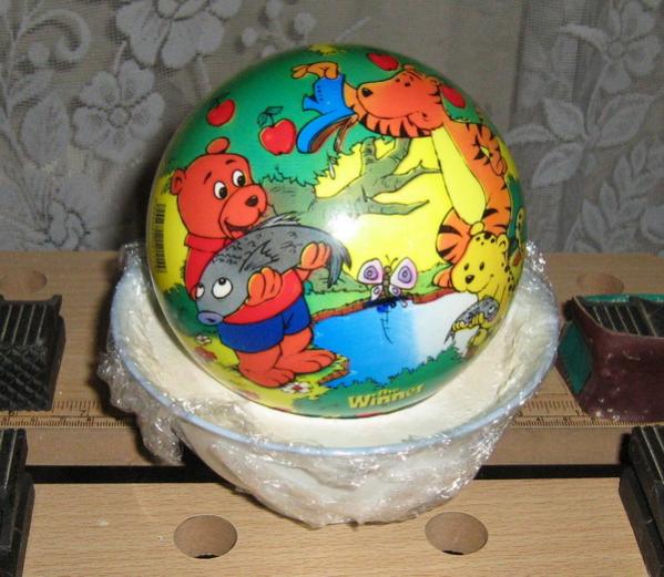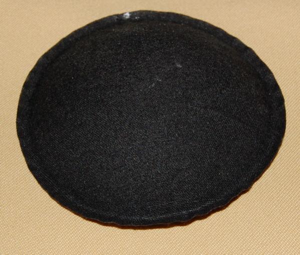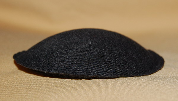 - Использовать для создания формы шар большего диаметра. Этот был около 14 см. Тогда кривизна колпачка будет меньшей, он будет более пологим, ткань при укладке будет меньше морщиться и край будет не таким волнистым.