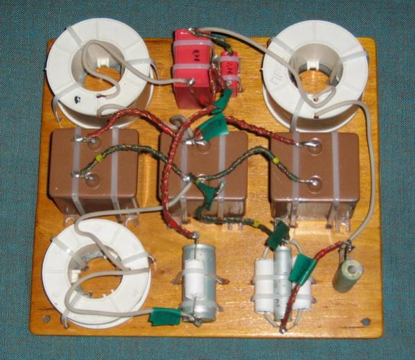 Также было интересно послушать, как «звучат» разные конденсаторы в фильтрах. Для низких частот оставил штатные МБГО-2, для средних использовал советские пленочные К73-16, для высоких К73-16 или Wima (какие именно оставить, решил после тестового прослушивания). Все конденсаторы заказал у DCorp. Они приехали подобранными парами для каждой колонки, с точно указанными номиналами. Емкости до нужных значений набирал из нескольких конденсаторов, соединяя их параллельно. Когда компоновал детали для фильтров, измерил емкость каждого МБГО с точностью до десятых и распределил их так, чтобы в обоих фильтра их суммарная емкость была примерно одинаковой.