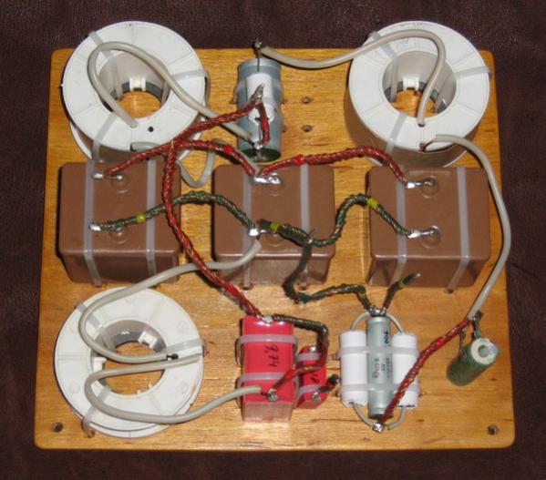 Для соединения деталей в фильтрах использовал те же проводники из телефонного кабеля, но не плетенные, а просто скрученные против часовой стрелке. Количество жил – 8. В тайм-план изготовления таких проводов дополнительно нужно внести 1-2 часа на их подготовку к пайке – зачистку и облуживание концов каждого проводка…