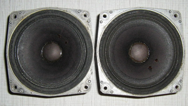 Год производства динамиков– 1993. Говорят, что после 90-го года резко упало качество товаров, производимых в СССР, а затем в СНГ. Эти динамики тому подтверждение. Внешне они выглядели хорошо, клеммы одного из них даже не были паяны, но дома при тщательном осмотре и прослушивании оказалось, что в одном динамике подвес приклеен вверх ногами, и в обоих катушки трутся о магнит. Кроме всего, подвесы были полностью облиты клеем. Возможно, это была отбраковка.